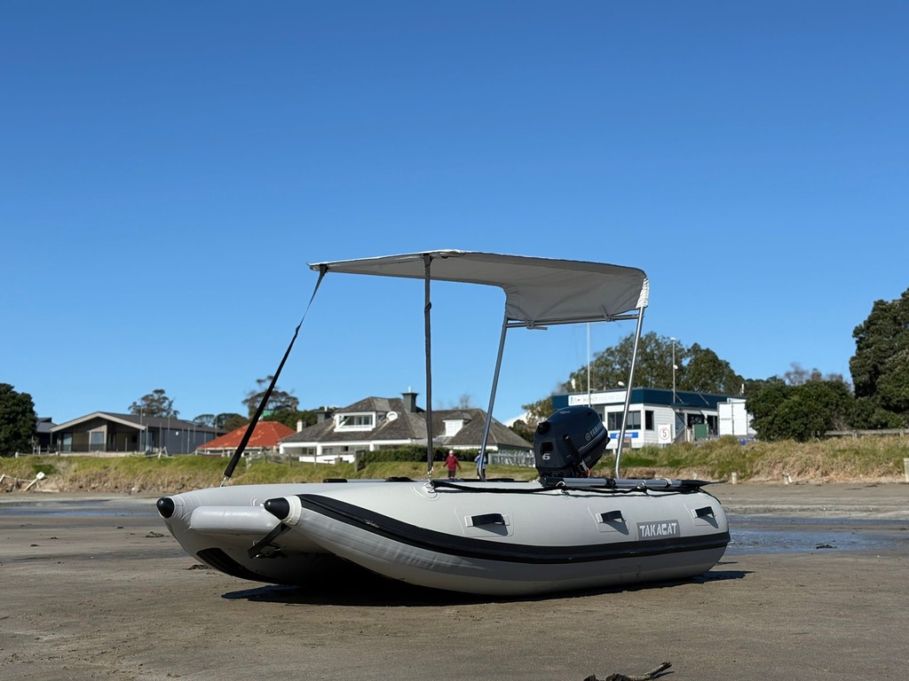 Das neue Bimini Top von Takacat wird einfach in die obere Transomstange eingesteckt. Es müssen keine zusätzlichen Halterungen auf die Schläuche aufgeklebt werden und die Ruderhalterungen sind in ihrer normalen Funktionsweise nicht eingeschränkt. Das Bimini kann komplett zerlegt und kompakt verstaut werden. Das Takacat Bimini ist mit allen LX- und SPORT-Modellen ab 2016 kompatibel, ausgenommen das 240S, die mit dem offenen Tube-Transom ausgestattet sind, egal ob die obere Transomstange gerade oder abgesenkt ist.