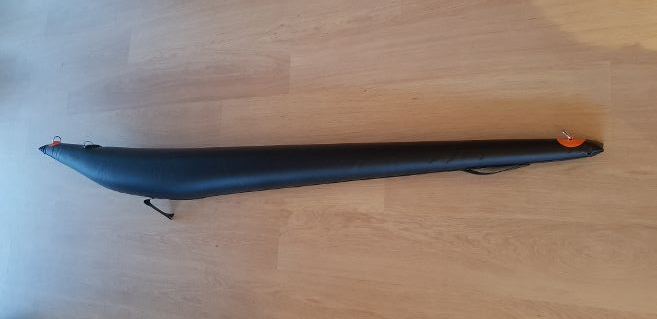 Beim 460LX werden die Schläuche geviertelt, das heißt Heck auf Bug und dann noch einmal in der Hälfte aufeinanderlegen. Deshalb ist das Packmaß beim 460LX etwas kürzer aber dafür in der Höhe etwas dicker. Im Anschluss wird das 460LX auch seitlich aufgerollt und mit den Zurrgurten fixiert.
